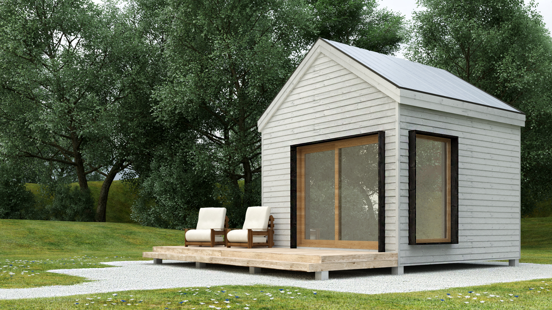 Whether for work or leisure, the Cote is a one room dwelling with lots of volume. Situating it with the outside in mind makes it perfect for a backyard with vast potential.
